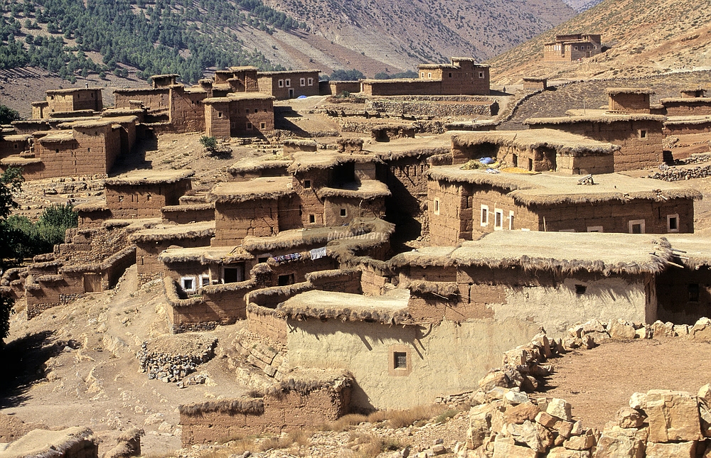 Coberturas planas de palha e terra no Alto Atlas marroquino. autor desconhecido