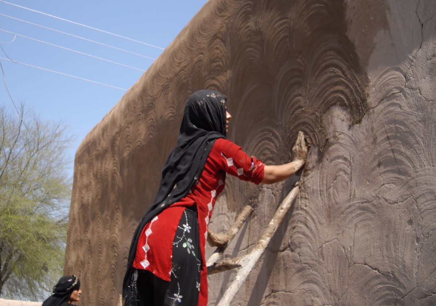 Reboco de bolas de terra projectadas em Timimoun, na Argélia. autor desconhecido