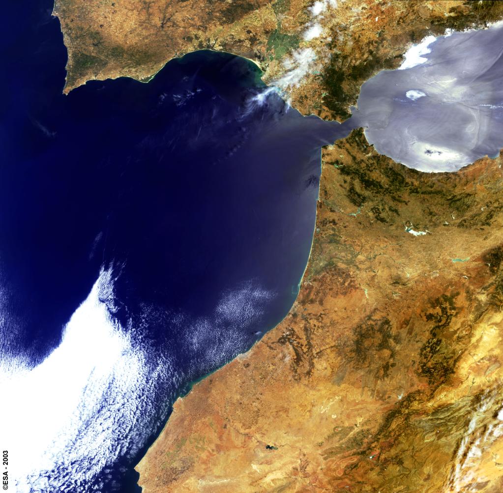 Vista de satélite do “Mar das Éguas” e Estreito de Gibraltar