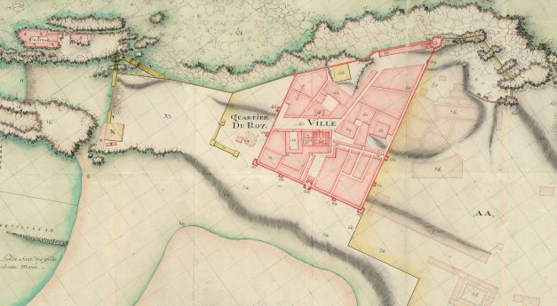 Localização do Castelo Real na Planta de 1740-1749 de Jacques-Nicolas Bellin. Bibliothèque Nationale de France