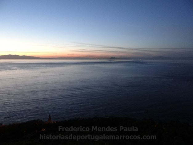 O Estreito de Gibraltar, vendo-se ao centro o Rochedo de Gibraltar, “Jebel Tarik” ou Montanha de Tarik