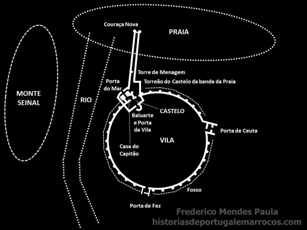 “Dúvidas não existem no que à abertura de uma cava em torno da vila diz respeito, depois de uma avaliação do capitão ter constatado a planura da implantação da vila. Desta forma, a água permitia formar um canal em redor da praça, aproveitando, eventualmente, parte do curso fluvial.” (CORREIA, 2008, p. 152)