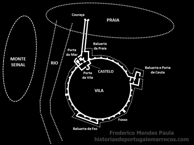 “Esta pequena cidade foi edificada sobre o mar Oceano, distante de Tânger aproximadamente doze milhas, e dezoito de Ceuta, por Mansour, rei de Marrocos, o qual passando todos os anos a Granada, encontrava uma certa passagem entre algumas montanhas por onde se vai ao mar, que é difícil de passar; pelo que, construiu esta cidade numa bela planície, que descobre toda a costa de Granada, e que está à ao alcance desta. A cidade é fortemente defendida, os seus habitantes são quase todos marinheiros, fazendo frequentemente a viagem entre a Barbária e a Europa. Outros são tecelões de teares, muitos são ricos mercadores e gente corajosa. O rei de Portugal tomou-a de assalto, e o rei de Fez tentou, várias vezes, reavê-la por todos os meios que pode: mas trabalhou em vão, no ano de 863 da Hegira (1458 d.C.)” (LÉON AFRICAIN, [1530] 1896, p. 247-248)