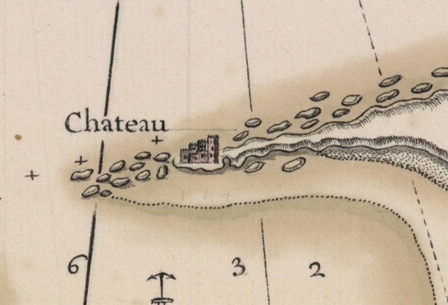 Detalhe da representação do Castelo Real na planta PLAN DU MOUILLAGE DE L’ISLE MOGADOR Levé le 21 Aout 1736 par le Capitaine Martin Lambrechtse, Bibliothèque Nationale de France