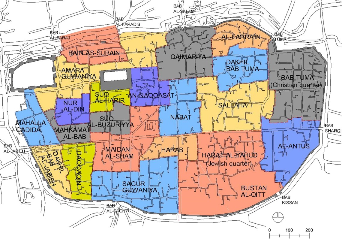 Esta realidade é referida normalmente como “mosaico de quarteirões” ou “manta de retalhos de grupos religiosos e organizações sociais”. No entanto, essa autogestão não era descoordenada e livre de condicionamentos, ou a cidade não teria coerência, pelo que os vários bairros/quarteirões eram sub-áreas de uma realidade urbana global, que refletia a existência de um processo de planeamento e gestão que os coordenava. (DABBOUR 2021: 108-109)