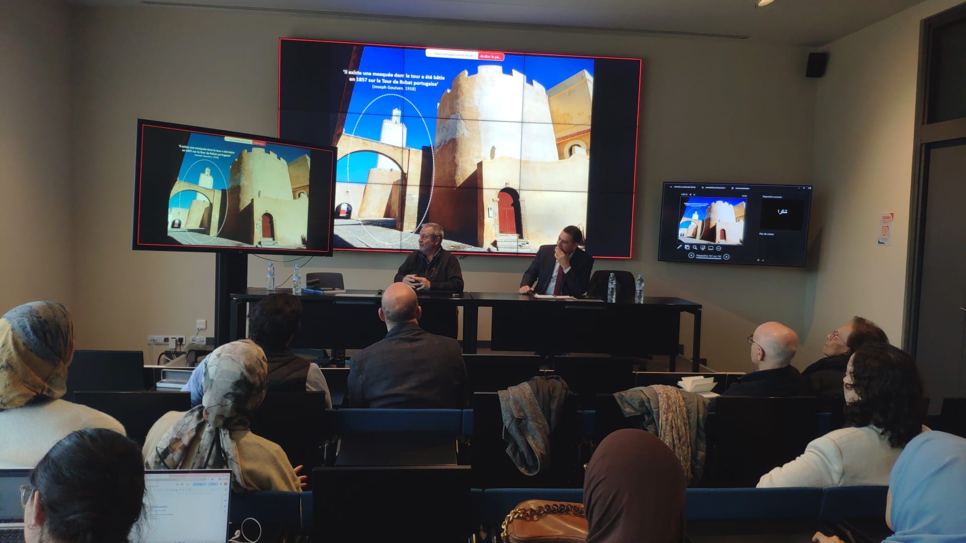 Embaixadora de Portugal em Marrocos, Maria Rita Ferro, a Conselheira Cultural da Embaixada de Portugal em Marrocos, Carla Grijó, a deputada do Parlamento de Marrocos, Touria Ikbal e o Director da Escola Nacional de Arquitectura de Marrakech, Abdelghani Tayyibi