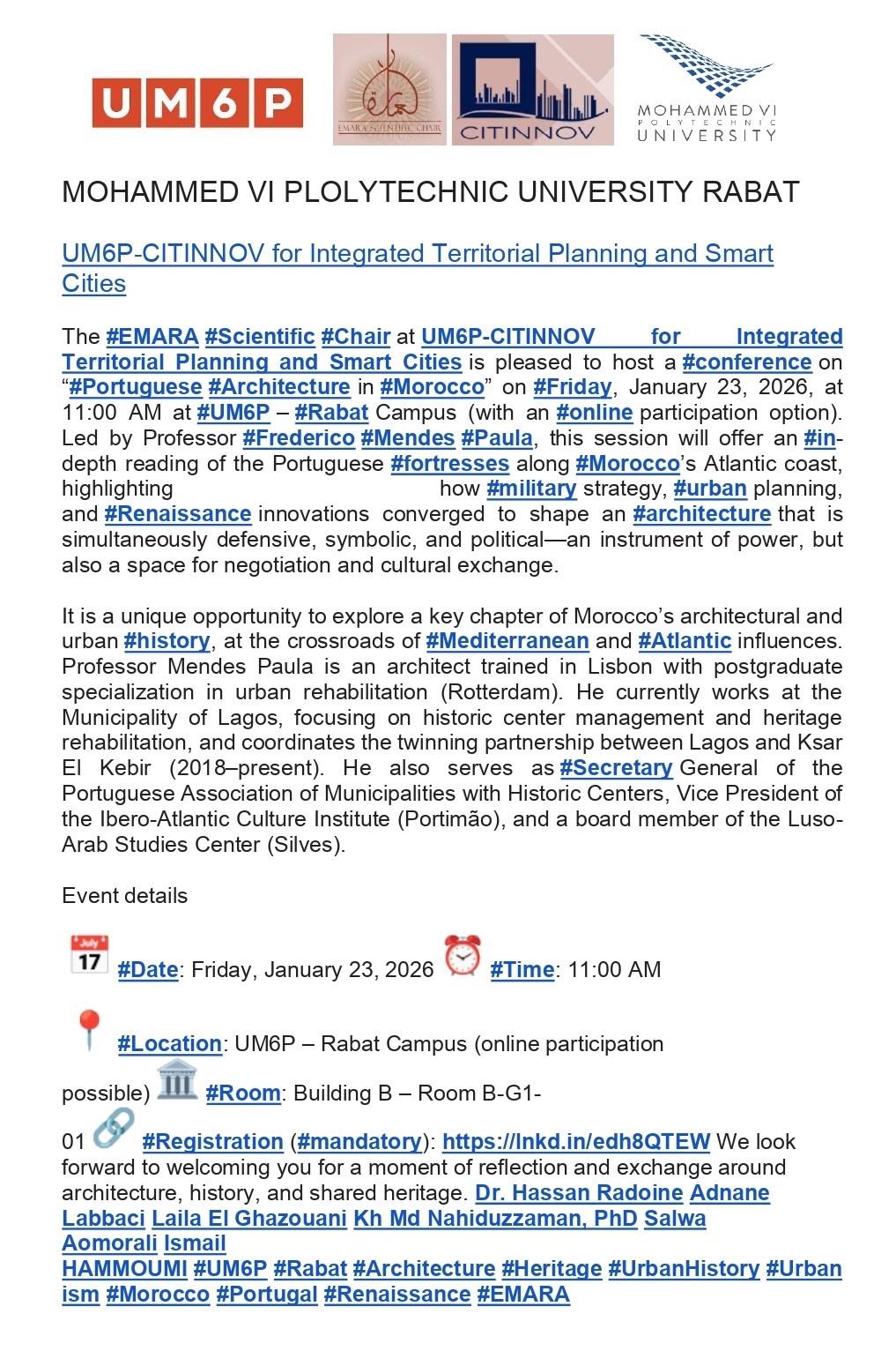 Com o Presidente do Município de Ksar El Kebir, Mohamed Simou, o Embaixador de Portugal em Marrocos, Bernardo Futscher Pereira e o Dr. Hassan Saaf