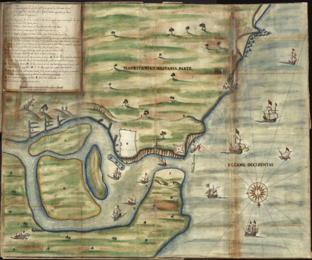 Planta de Larache de 1606, desenhada por Alexandre Massai conforme o original de João Matteo Benedetti, in Descrição e plantas da costa, dos castelos e fortalezas, desde o reino do Algarve até Cascais, da ilha Terceira, da praça de Mazagão, da ilha de Santa Helena, da fortaleza da Ponta do Palmar na entrada do rio de Goa, da cidade de Argel e de Larache, Casa de Cadaval, Arquivo Nacional da Torre do Tombo