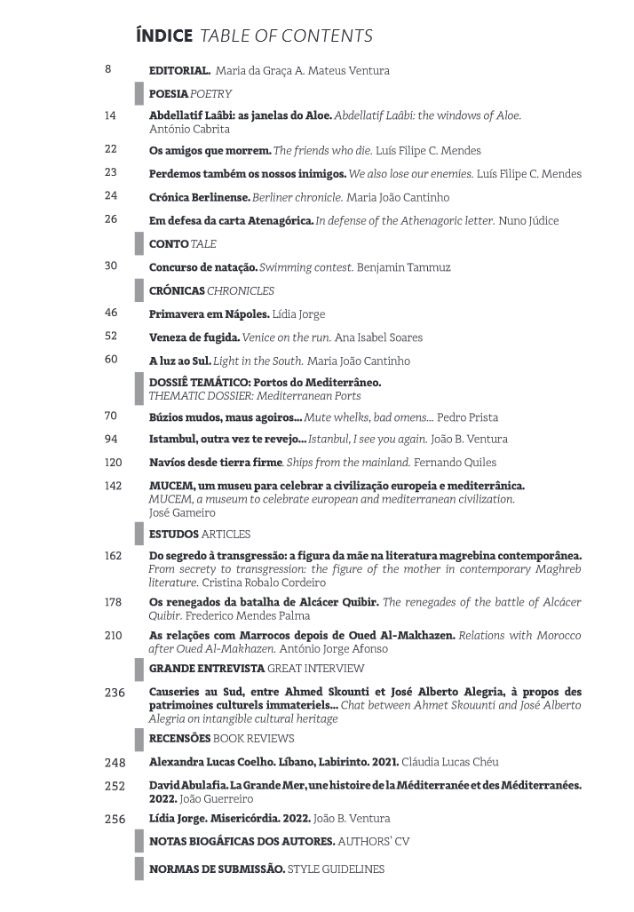 “Os renegados da Batalha de Alcácer Quibir” (2023). In Meridional, Revista de Estudos do Mediterrâneo, número 3, pp. 178-209. Portimão: Instituto de Cultura Ibero-Atlântica